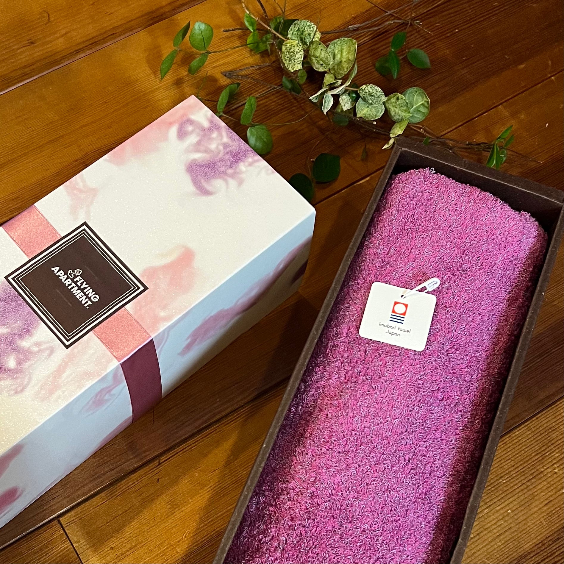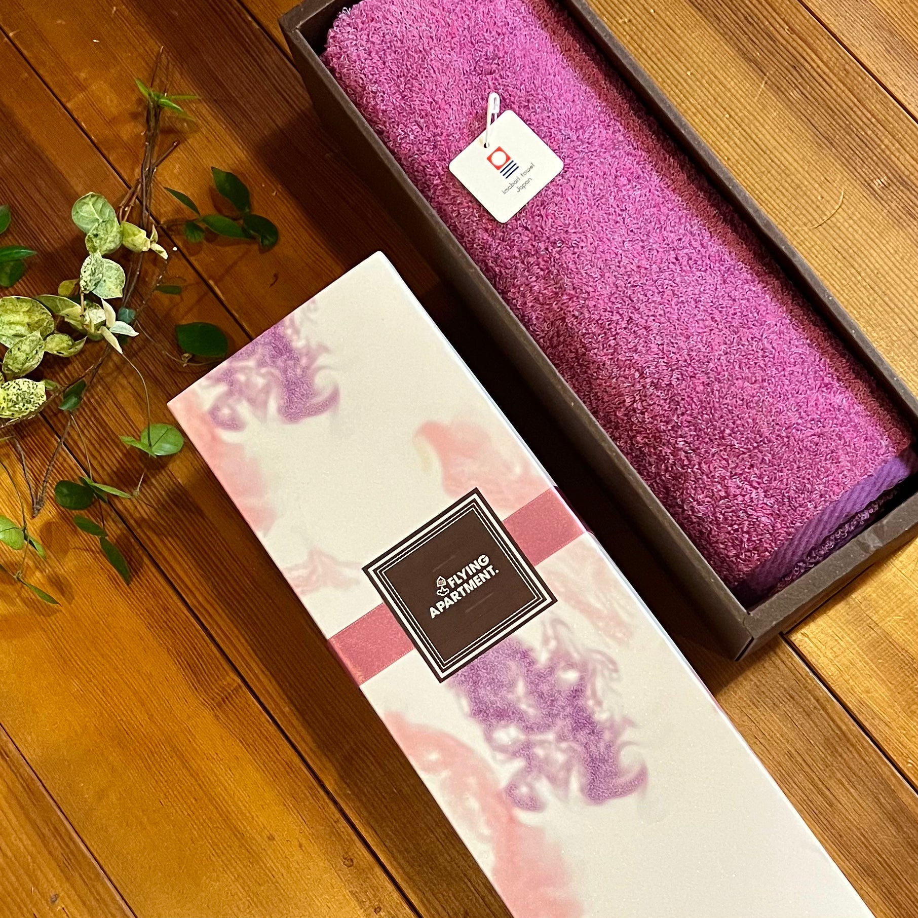 カラートリップタオルのバスタオルが、綺麗に1枚入るギフトBOXです。パール紙で作られたBOXは、さりげない光沢感がありとても美しい箱です。FLYING APARTMENTオリジナル。